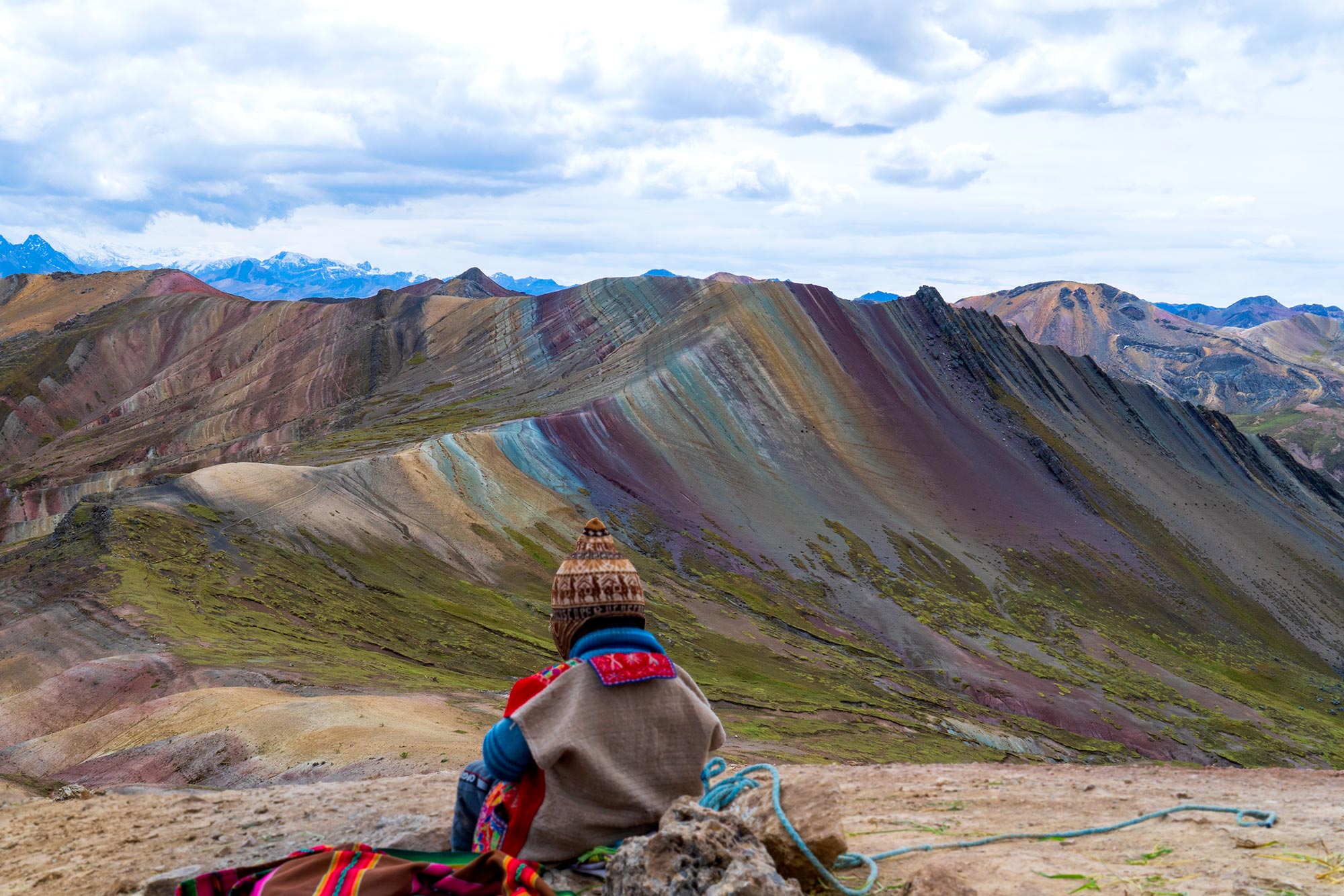 En el camino podrás ir observando un conjunto de montañas de colores, y en el fondo un valle de color rojo, contrastado con el nevado Ausangate a la distancia. Además, a mitad de la caminata se puede apreciar un bosque de piedras, que son picos de rocas de tamaño de árboles. En esta ruta también conoceremos el puente colgante Checacupe, el cual fue construido por quechuas. Comenzamos nuestro recorrido después del recojo de pasajeros de su hospedaje durante el camino por carretera asfaltada pasando por diferentes pueblos llenos de historia, gastronomía y hermosos paisajes hasta llegar a Combapata. En Combapata, tomaremos un desvió, hacia la Comunidad de Pallcoyo, el tiempo promedio de viaje será de un total de 3 horas aproximadamente, antes de iniciar con nuestro tour nuestro guía les doró una charla de seguridad a todos nuestros pasajeros, para realizar nuestra caminata de forma segura, la caminata hacia la primera montaña de colores es por un sendero tendido y dura 30 min, el esfuerzo físico no es exigido, después de nuestra visita a la Cordillera de Pallcoyo, retornaremos por el mismo camino a nuestro transporte para emprender el viaje de regreso, deteniéndonos nuevamente en el restaurante para saborear un exquisito almuerzo Andino. Finalizaremos nuestra jornada con el retorno a Cusco, donde le dejaremos en la Plaza Regocijo, situada en el corazón del Centro Histórico, cerca de su hotel.